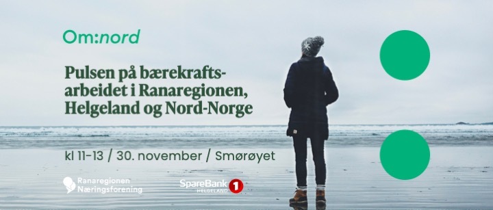 Sparebank 1 Helgeland og Ranaregionen Næringsforening inviterer til lokal lansering av Om:nord torsdag den 30. november kl 11-13 i Smørøyet. Bli bedre kjent med Om:nord, lær mer om hvordan det står til med bærekraftsarbeidet i Nord-Norge, og bli inspirert av hvordan Rana kommune og Rana FK jobber med bærekraft.